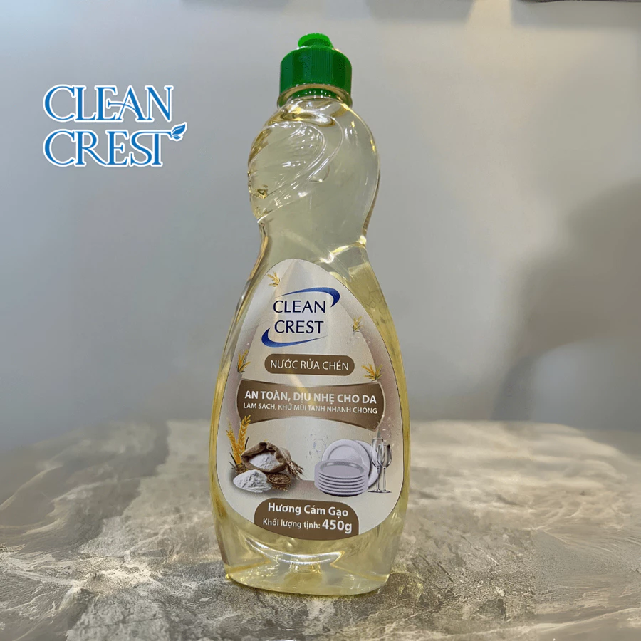 Nước Rửa Chén Bát Clean Crest Hương Cám Gạo 450g, Nước Rửa Bát Đậm Đặc, Đánh Bay Dầu Mỡ Cứng Đầu, Bảo Vệ Da Tay